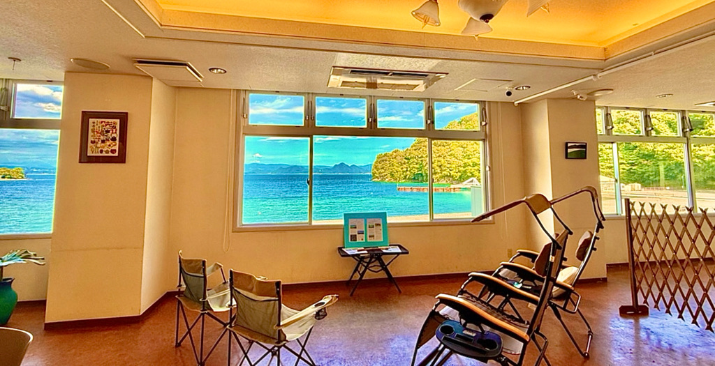 駒形さんは「見て・触れて・感じる」新しい読書体験を切り拓き、フランス、イタリア、アメリカなどを筆頭に、国際的に高い評価を受けてきました。フロント前のイロリラウンジには、海の息吹きがみなぎる代表作『BLUE TO BLUE』『空が青いと海も青い』もあわせて紹介しております。